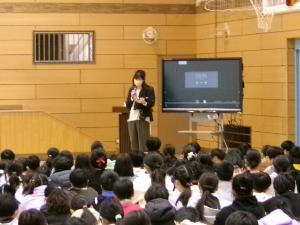 12月の全校朝会を行いました。校長先生から「人権」をテーマに得意なことや好きなことが違う人がいっぱいいること、「みんなちがって、みんないい」ことについてお話いただきました。また、環境委員から今月の生活目標について説明がありました。